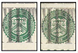 The genuine portrait appears lifelike and stands out distinctly from the background. The counterfeit portrait is usually lifeless and flat. Details merge into the background which is often too dark or mottled.Federal Reserve and Treasury Seals
