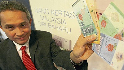 Azman menunjukkan wang kertas siri baru yang dikeluarkan Bank Negara di Kuala Lumpur, baru-baru ini.