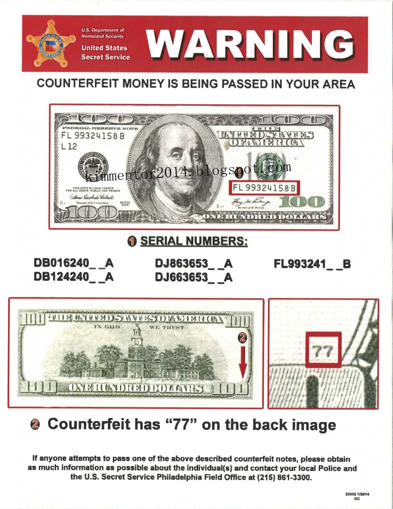 BEWARE OF FAKE MONEY